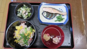 お昼はちらし寿司やデザートもあって、美味しい、楽しい敬老会になりました。