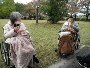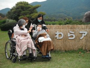 10/29、7・8丁目のご利用者と一緒に上堰潟公園までドライブに行き、わらアート作品を見て来ました。