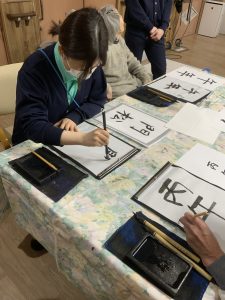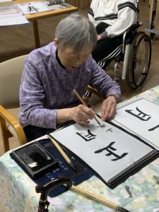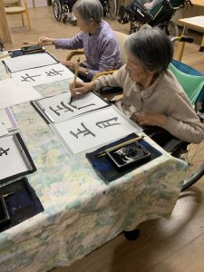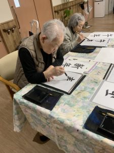 ショートステイのユニット行事で書初めを行いました。