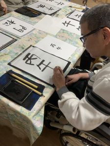 久しぶりに筆を持つ方も多く、「懐かしいね」「緊張して手が震える」と言いながら、