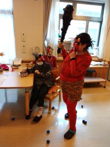 始めは少し怖がる方もいましたが、「鬼は外、福は内」と狙いを定めて真剣な表情で投げる方、笑いながら何度も挑戦する方などユニットは大盛り上がりでした。