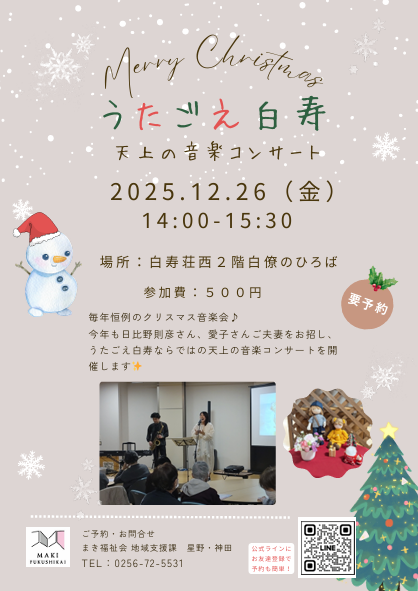 | 場所 | まき福祉会 白寿荘西 2階 白僚のひろば |